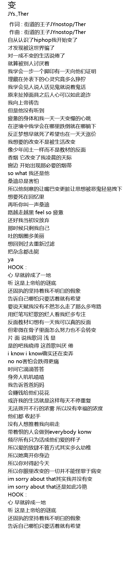| [00:00.000] | 作词 : 街道的王子JYnostop/Ther |