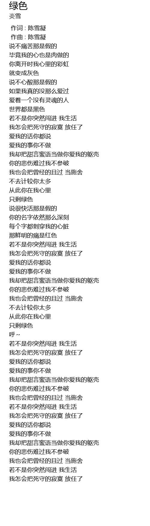 | [02:21.508] | zhǐ shèng lǜ sè |