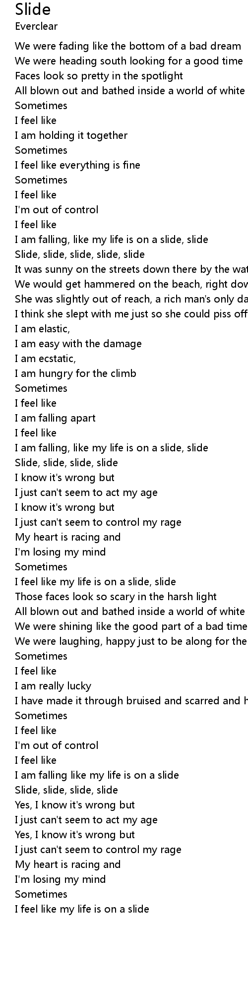 I am falling, like my life is on a slide, slide