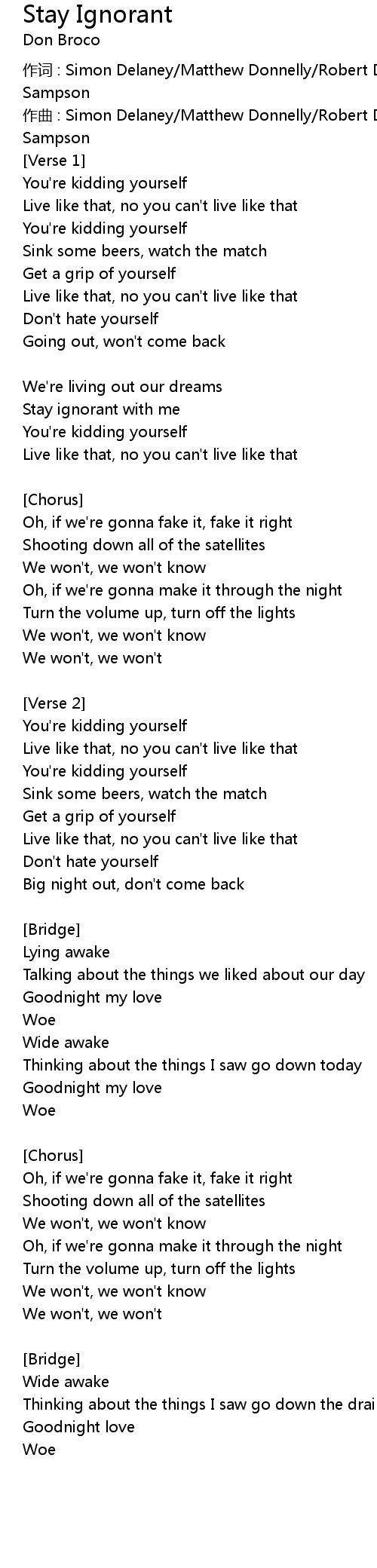 | 歌曲 | Stay Ignorant |