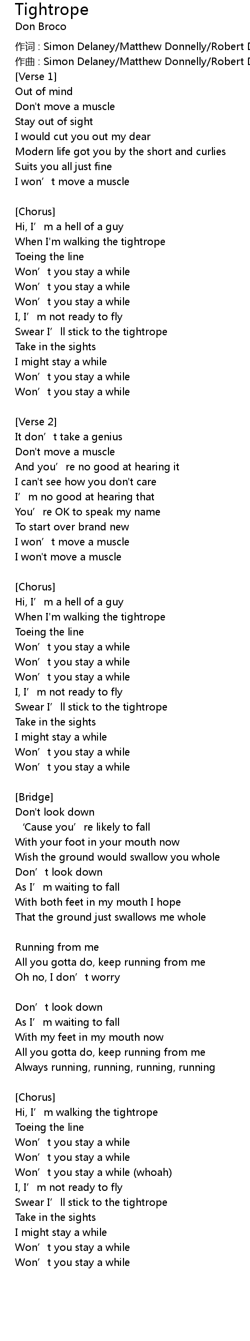 | 歌曲 | Tightrope |