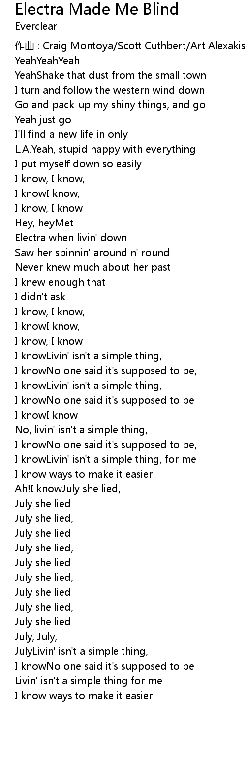 | 歌曲 | Electra Made Me Blind |