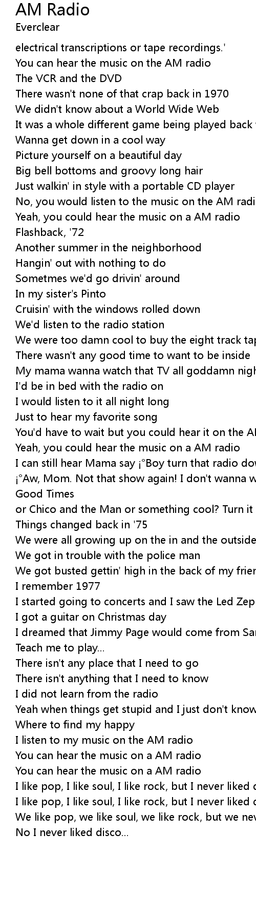 | I listen to my music on the AM radio | |