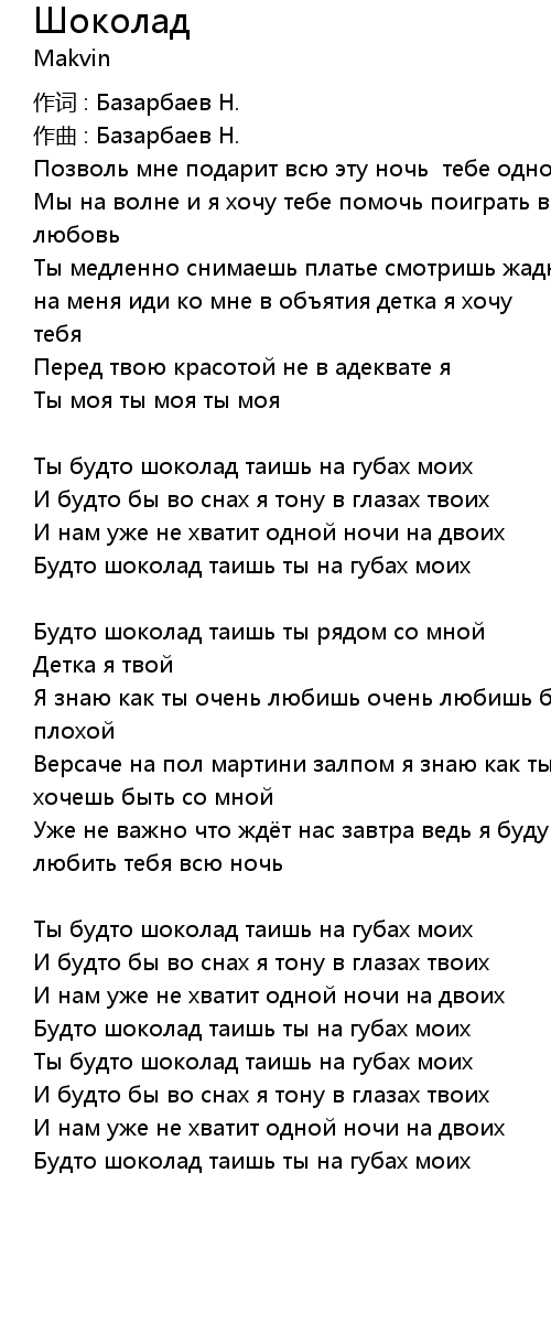 Будто шоколад таишь ты на губах моих |
