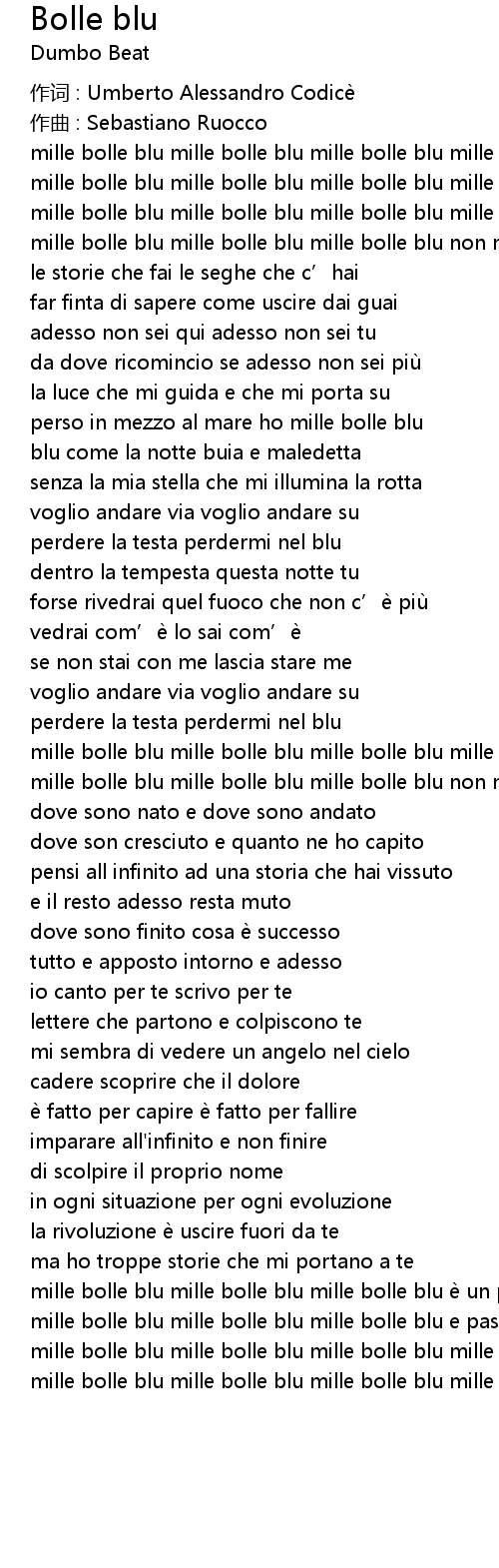 | mille bolle blu mille bolle blu mille bolle blu e un po' che non ti sento | |