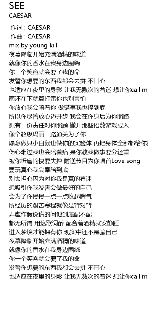 | [00:00.000] | 作词 : CAESAR |
