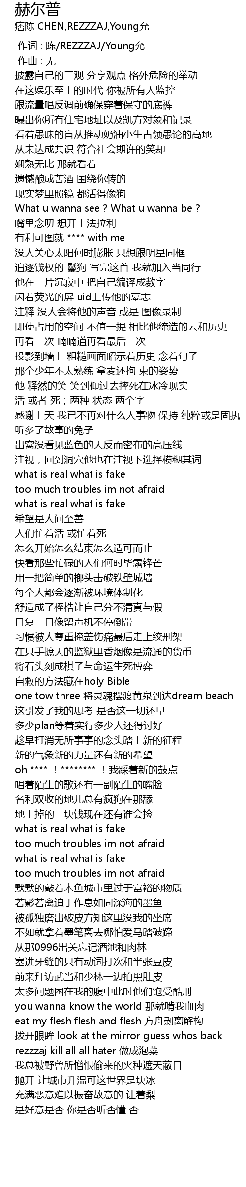 | [03:10.887] | rezzzaj kill all all hater zuò chéng pào cài |