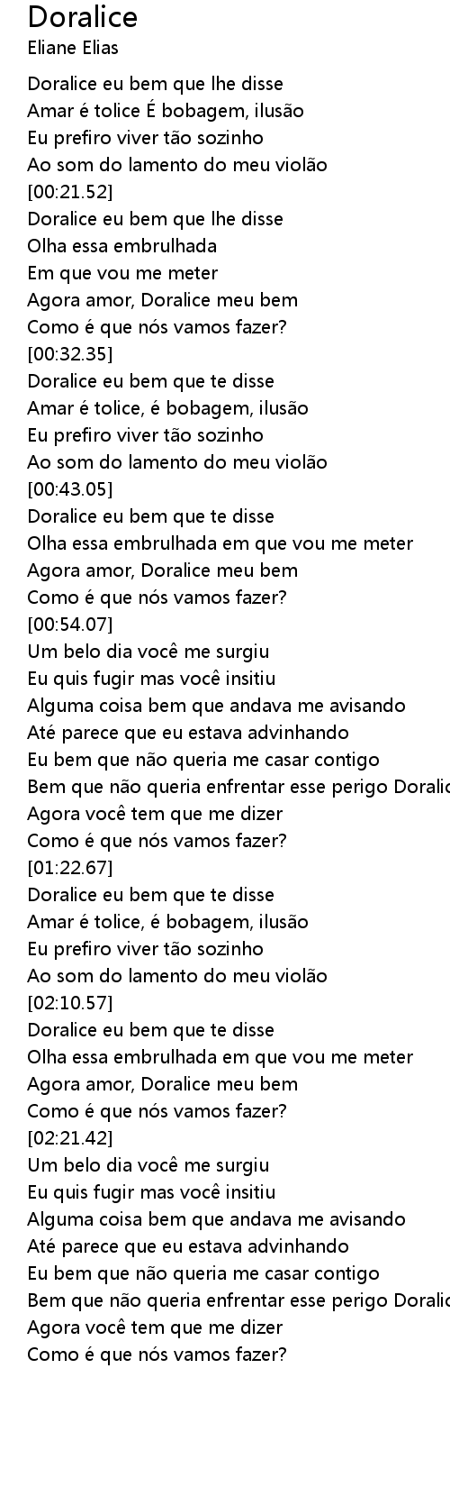 | [02:00.43] | Doralice eu bem que te disse |