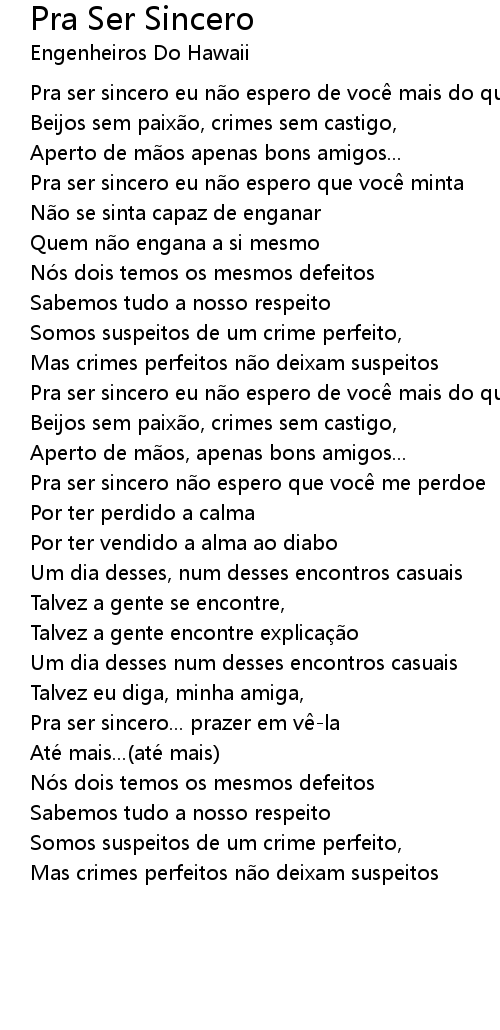 | Pra ser sincero eu n o espero que voc minta | |