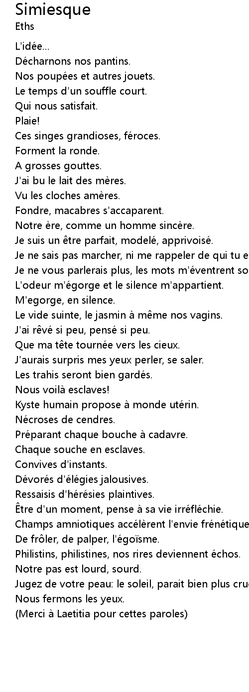 | Merci a Laetitia pour cettes paroles |