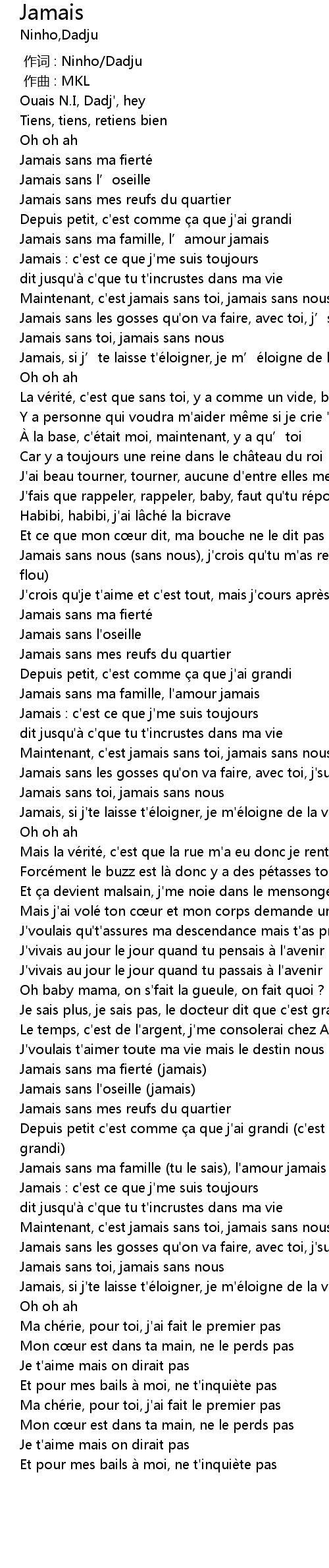 [02:52.79] Jamais sans ma famille (tu le sais), l'amour jamais (jamais)
