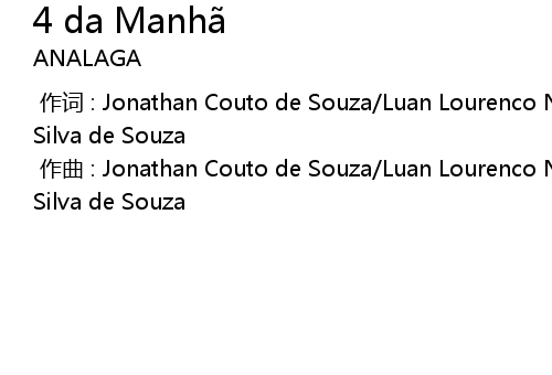 | [00:00.000] | zuo qu : Jonathan Couto de Souza Luan Lourenco Neto Saulo Marcio Silva de Souza |