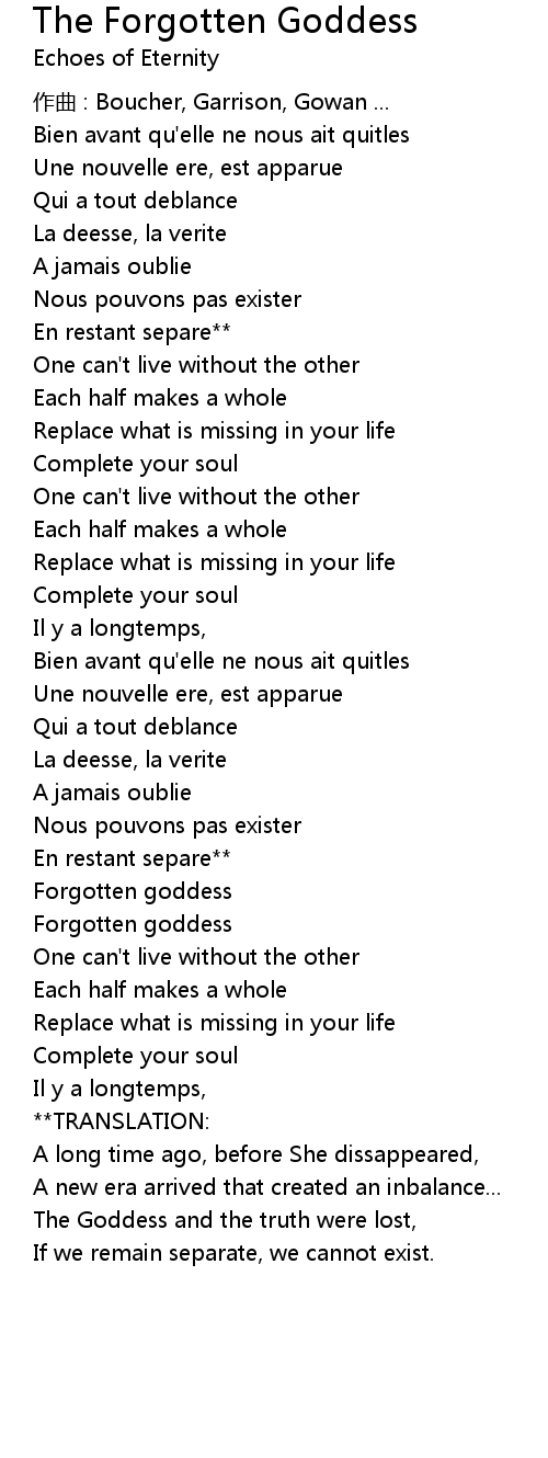 | 歌曲 | The Forgotten Goddess |