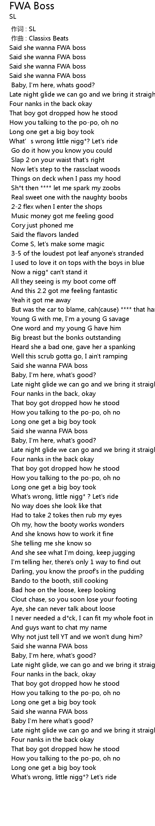 | [03:09.900] | What' s wrong, little nigg? Let' s ride |