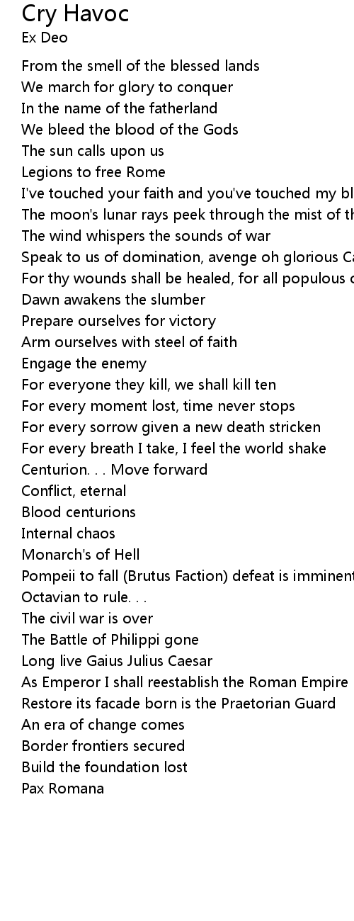 | Speak to us of domination, avenge oh glorious Caesar | |