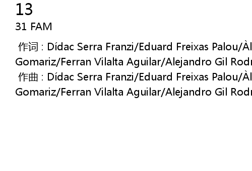 | [00:00.000] | zuo qu : Di dac Serra Franzi Eduard Freixas PalouÀ lex Sa nchez Gomariz Ferran Vilalta Aguilar Alejandro Gil Rodri guez Joel Cosp McGettigan |