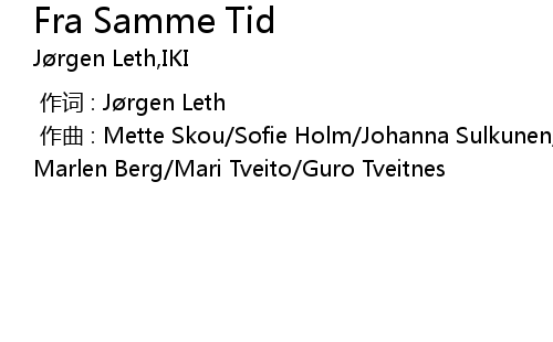 | [00:00.000] | 作曲 : Mette Skou/Sofie Holm/Johanna Sulkunen/Kamilla Kovacs/Mia Marlen Berg/Mari Tveito/Guro Tveitnes |