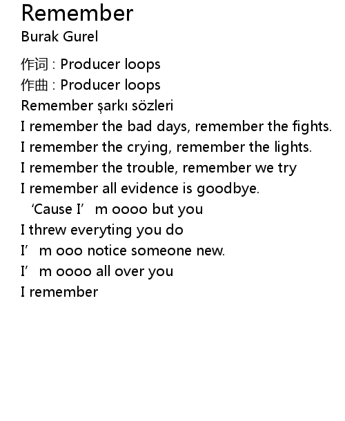 | Remember şarkı sözleri | |
