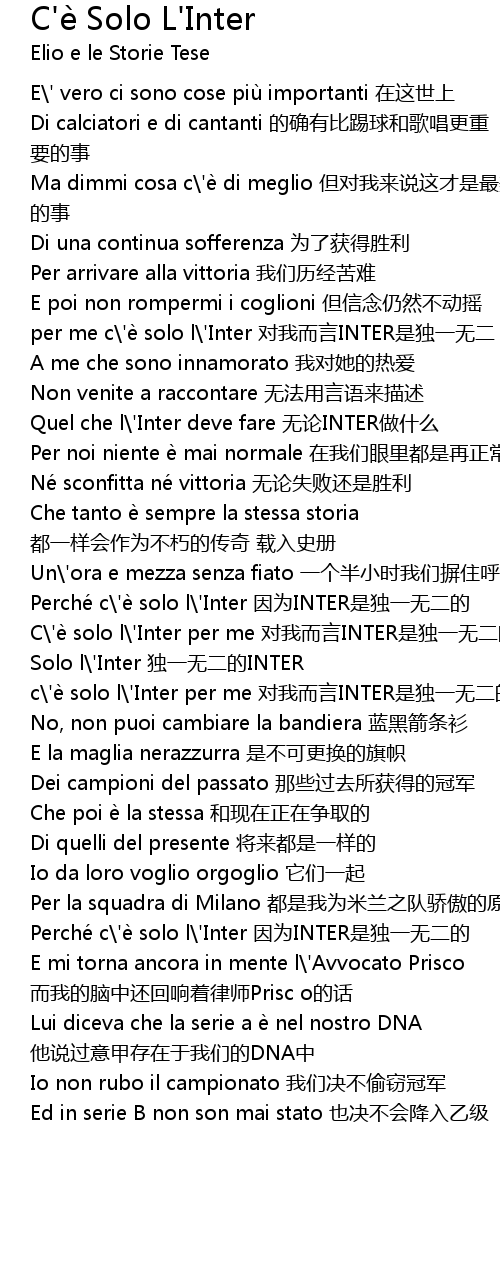 | [01:17.210] | C\'è solo l\'Inter per me 对我而言INTER是独一无二的 |