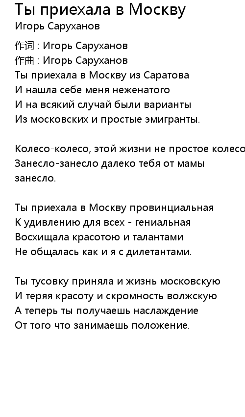 Ты приехала в Москву из Саратова |