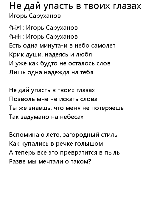 | Не дай упасть в твоих глазах | |