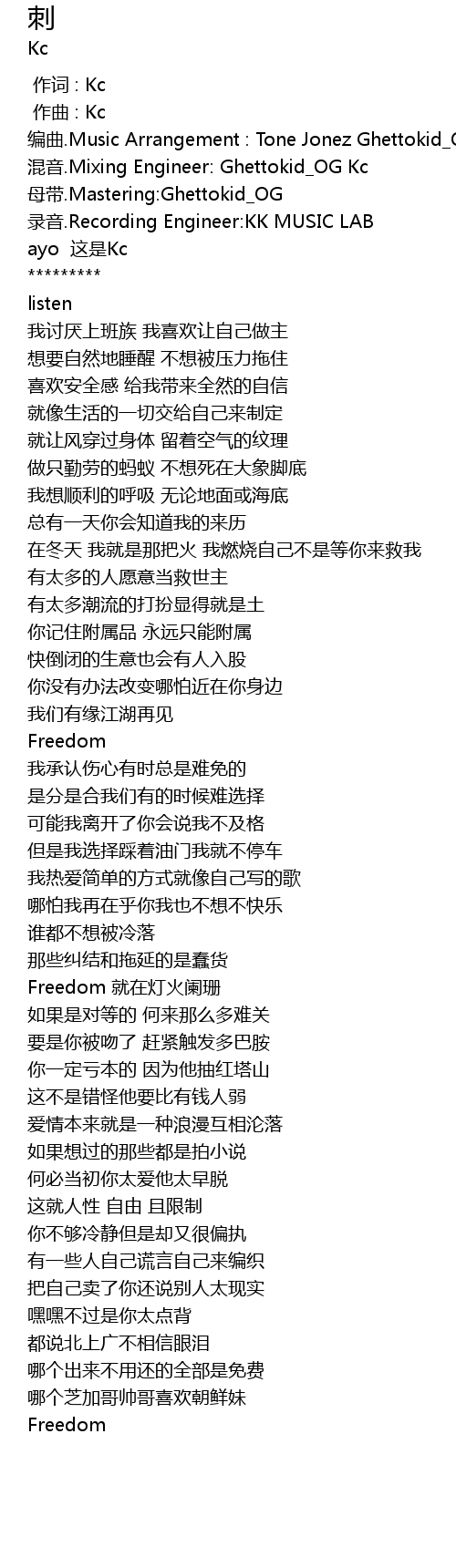 | [00:03.185] | 混音.Mixing Engineer: Ghettokid_OG Kc |