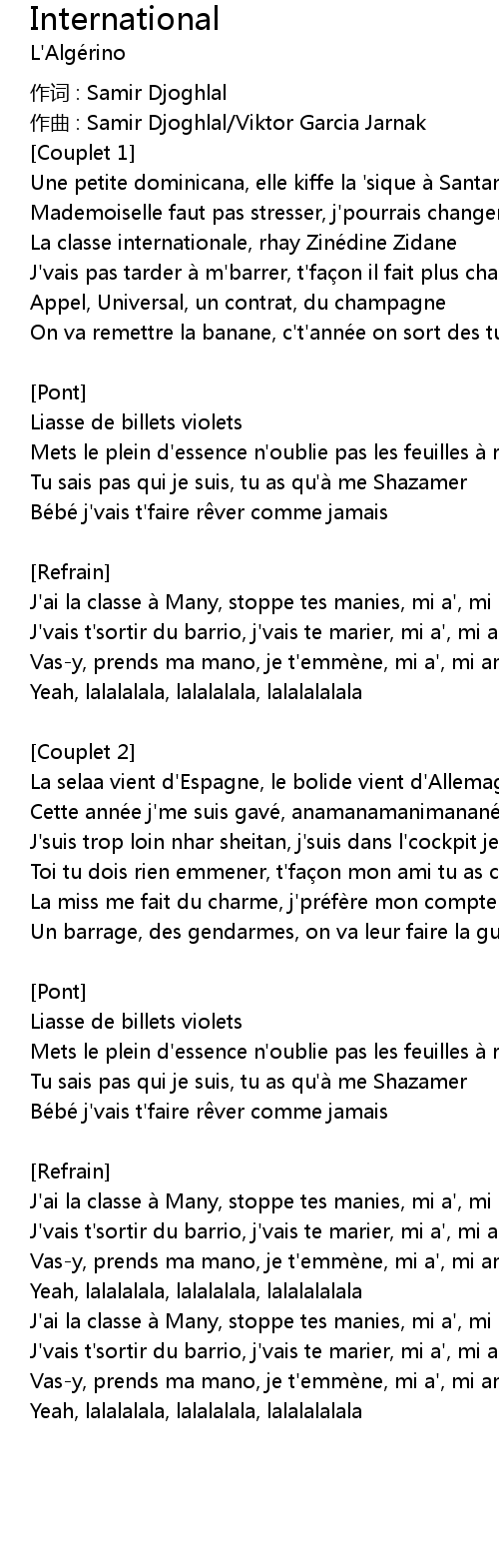 | 作词 : Samir Djoghlal | |