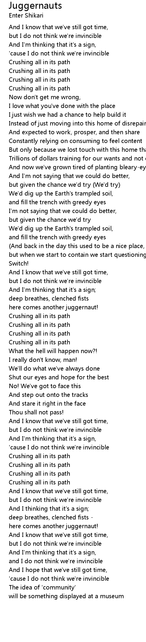 Juggernauts 歌词