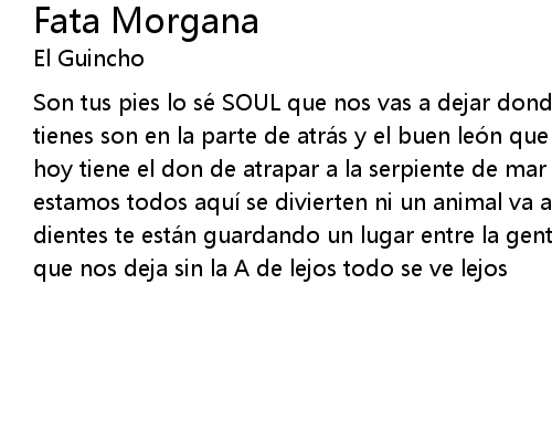 | Son tus pies lo sé SOUL que nos vas a dejar donde siempre bebé de halcón tienes son en la parte de atrás y el buen león que al nadar siempre se pierde hoy tiene el don de atrapar a la serpiente de mar de lejos todo se ve lejos si estamos todos aquí se divierten ni un animal va a esperar a que lleguen los dientes te están guardando un lugar entre la gente no es porque sí tienes algo que nos deja sin la A de lejos todo se ve lejos |