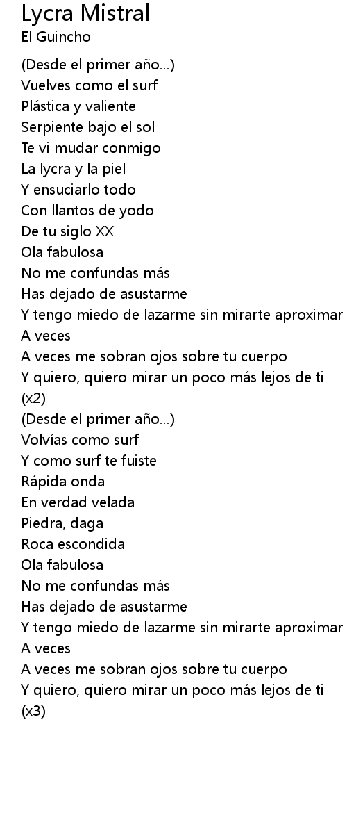 | 歌曲 | Lycra Mistral |