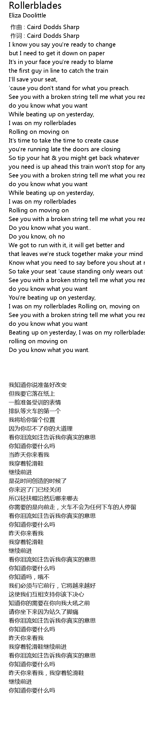 | [02:26.09] | I was on my rollerblades Rolling on, moving on |