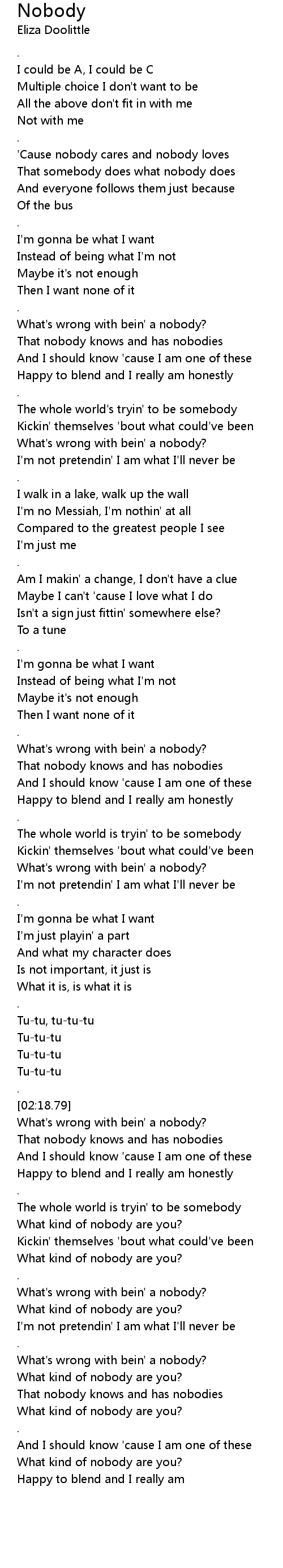 [02:44.54] What's wrong with bein' a nobody?
