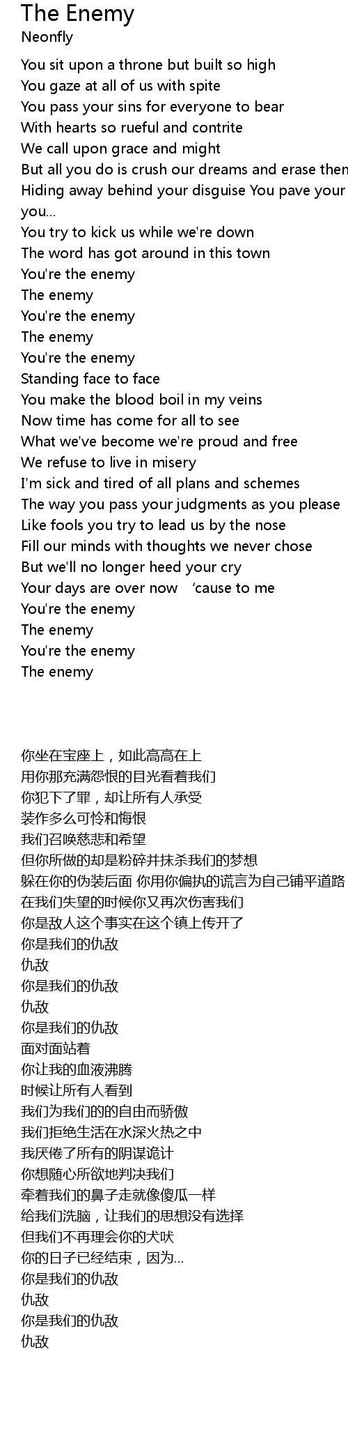 | [01:07.57] | 你是敌人这个事实在这个镇上传开了 |