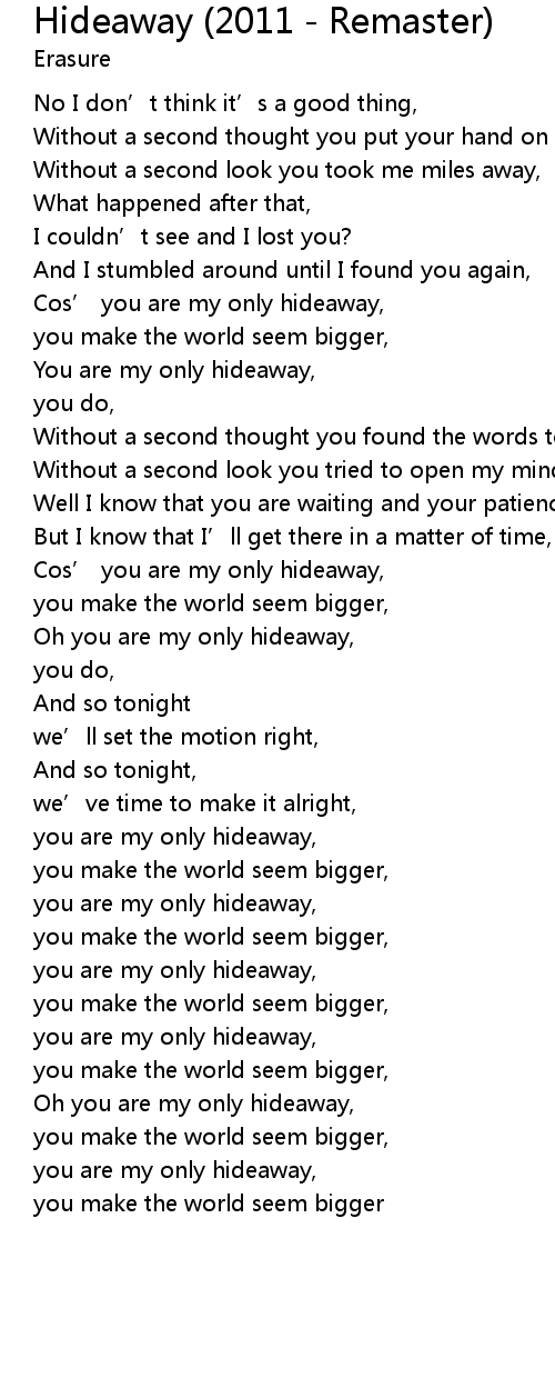 | 歌曲 | Hideaway (2011 - Remaster) |