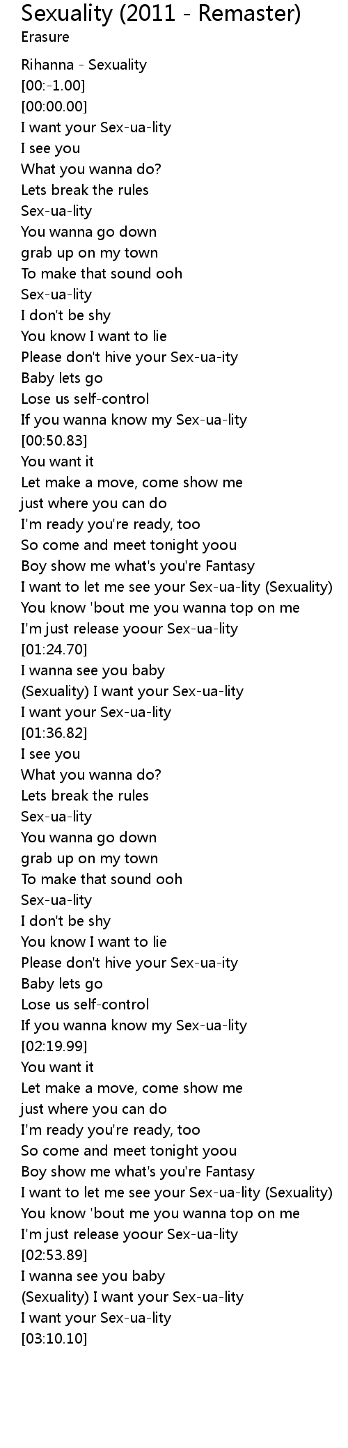 I want to let me see your Sex-ua-lity (Sexuality) |