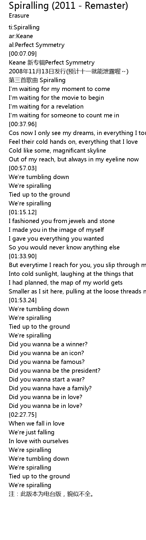 | 歌曲 | Spiralling (2011 - Remaster) |