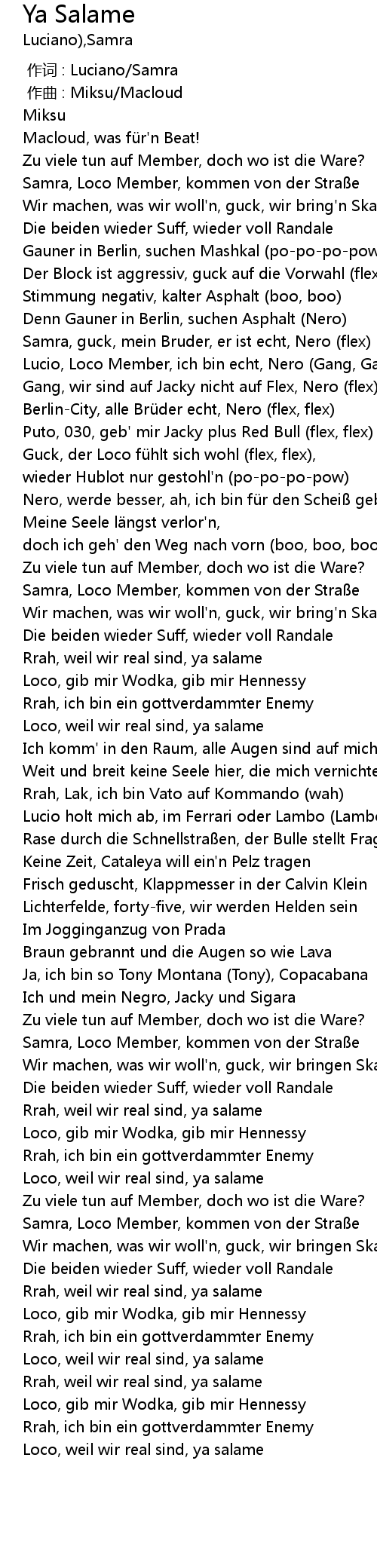 | [01:53.89] | Samra, Loco Member, kommen von der Stra e |