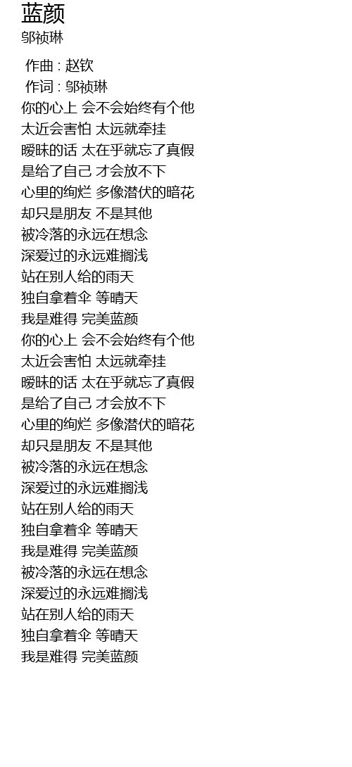 | [00:01.00] | 作词 : 邬祯琳 |