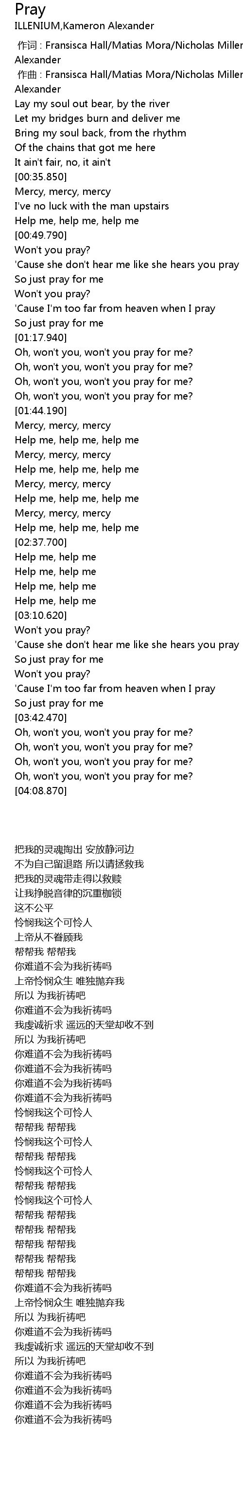 | [03:16.200] | 你难道不会为我祈祷吗 |