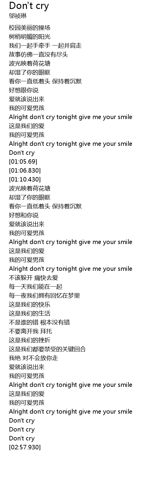 | [02:55.750] | Don' t cry |