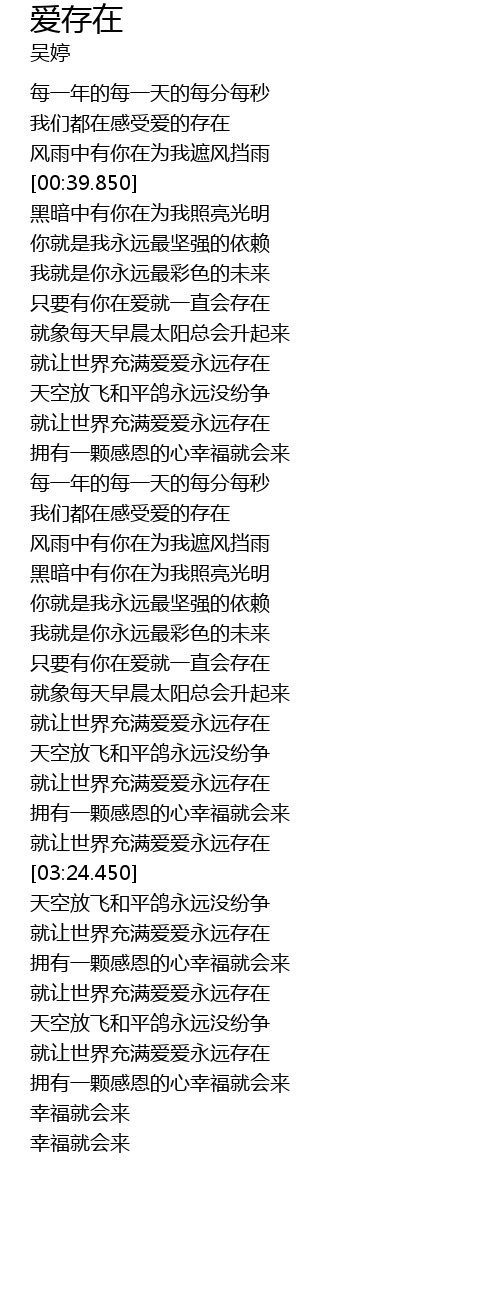 | [03:46.250] | 就让世界充满爱爱永远存在 |