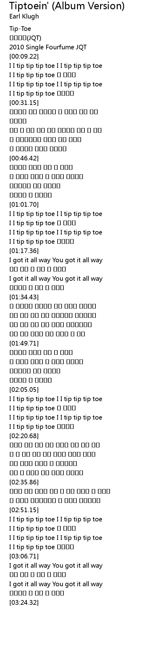 | [01:09.78] | I I tip tip tip toe I I tip tip tip toe |