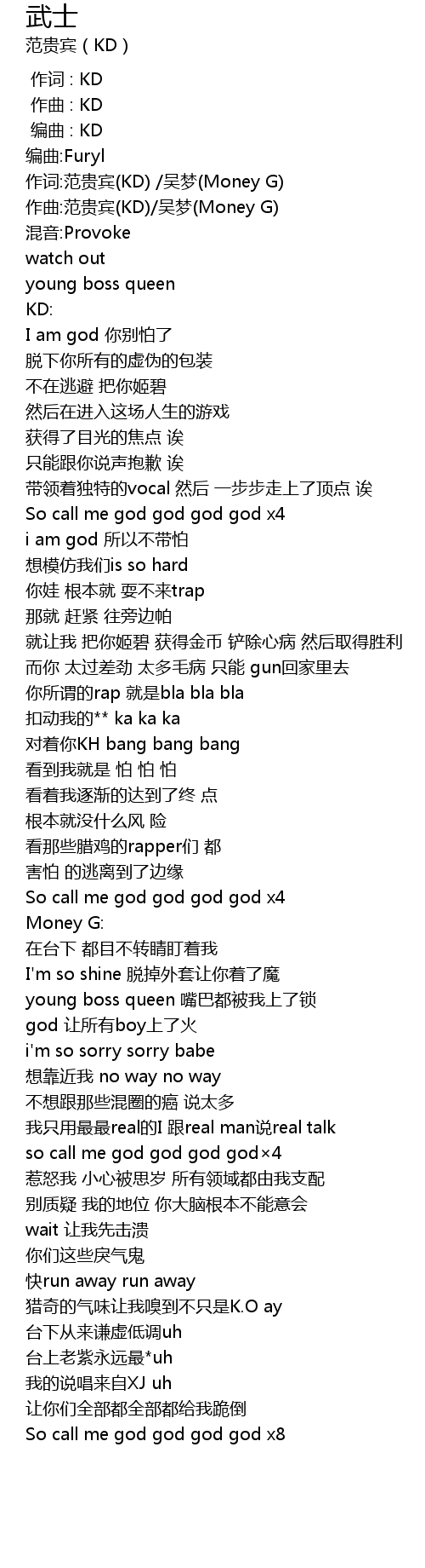 | [00:01.164] | zuò cí: fàn guì bīn KD wú mèng Money G |