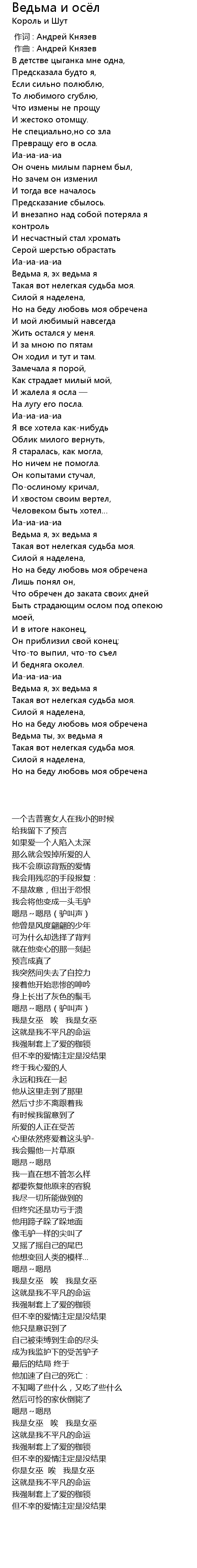 | 歌曲 | Ведьма и осёл |