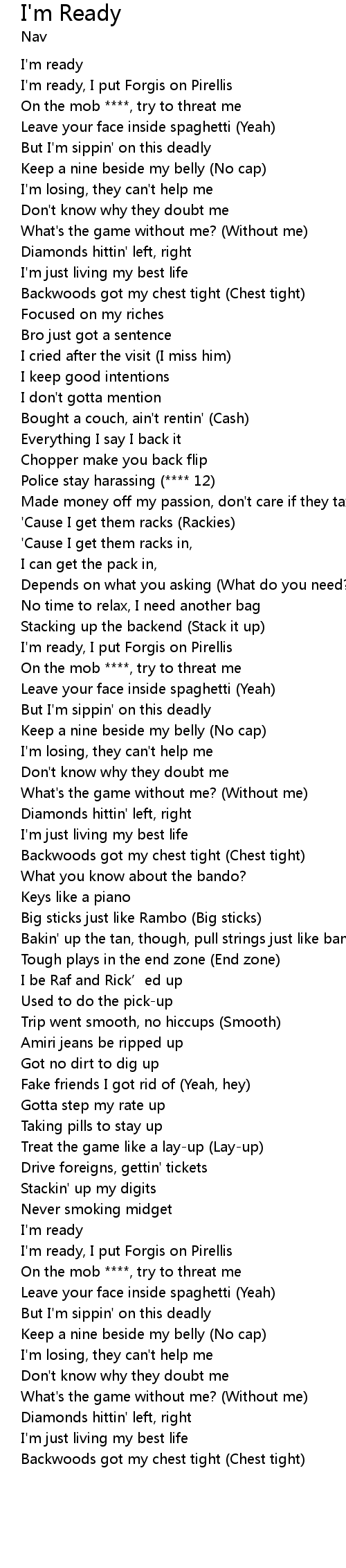 | 歌曲 | I'm Ready |