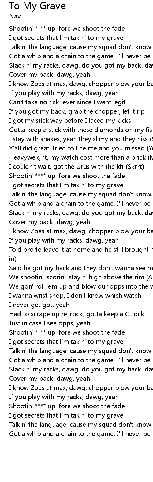 I got secrets that I'm takin' to my grave |