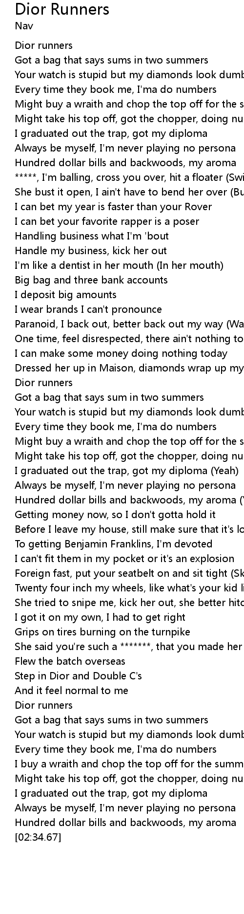 Dior Runners 歌词