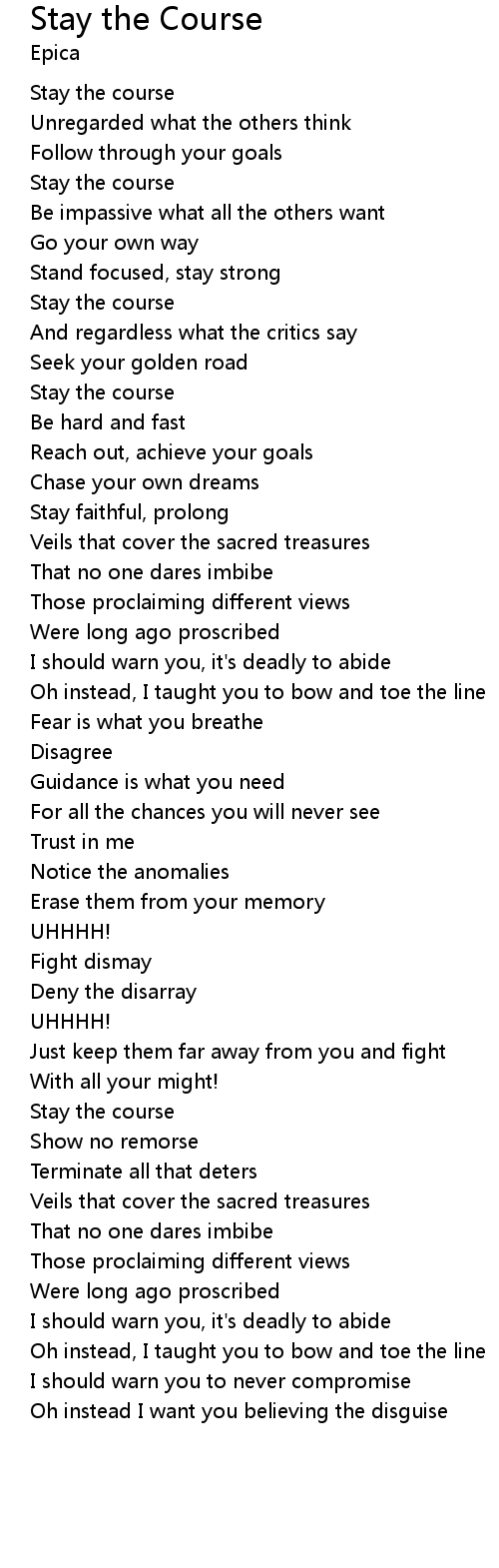 Stay the course |