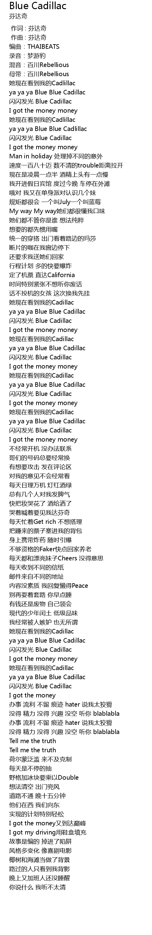 | [02:31.450] | shan shan fa guang Blue Cadillac |