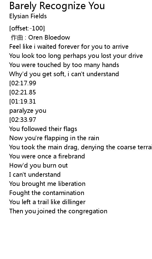 | [00:59.57][02:21.85][03:30.13] | I can barely recognize you |